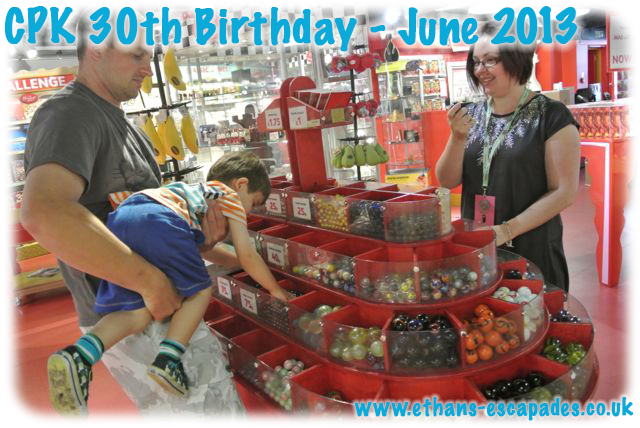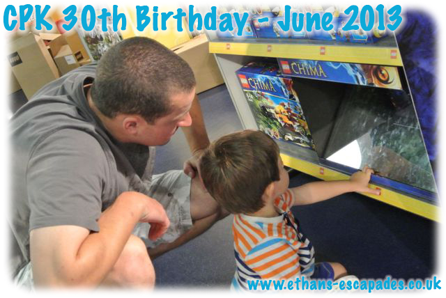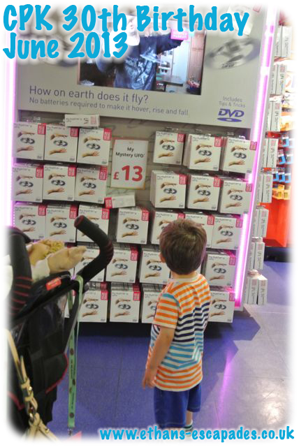 I tried to get Ethan to join in with pass the parcel but he wasn’t interested in sitting still. What did I expect he was in a massive space, filled with lots of fantastic colours, toys that had moving parts, video walls of the toys and to top it off lots and lots of escalators. Ethan loves an escalator, when we go into ASDA’s we can’t start our shopping until we have gone up and down the travelator. The organisers of the party were amazing and they were happy for us to let Ethan walk around the store.